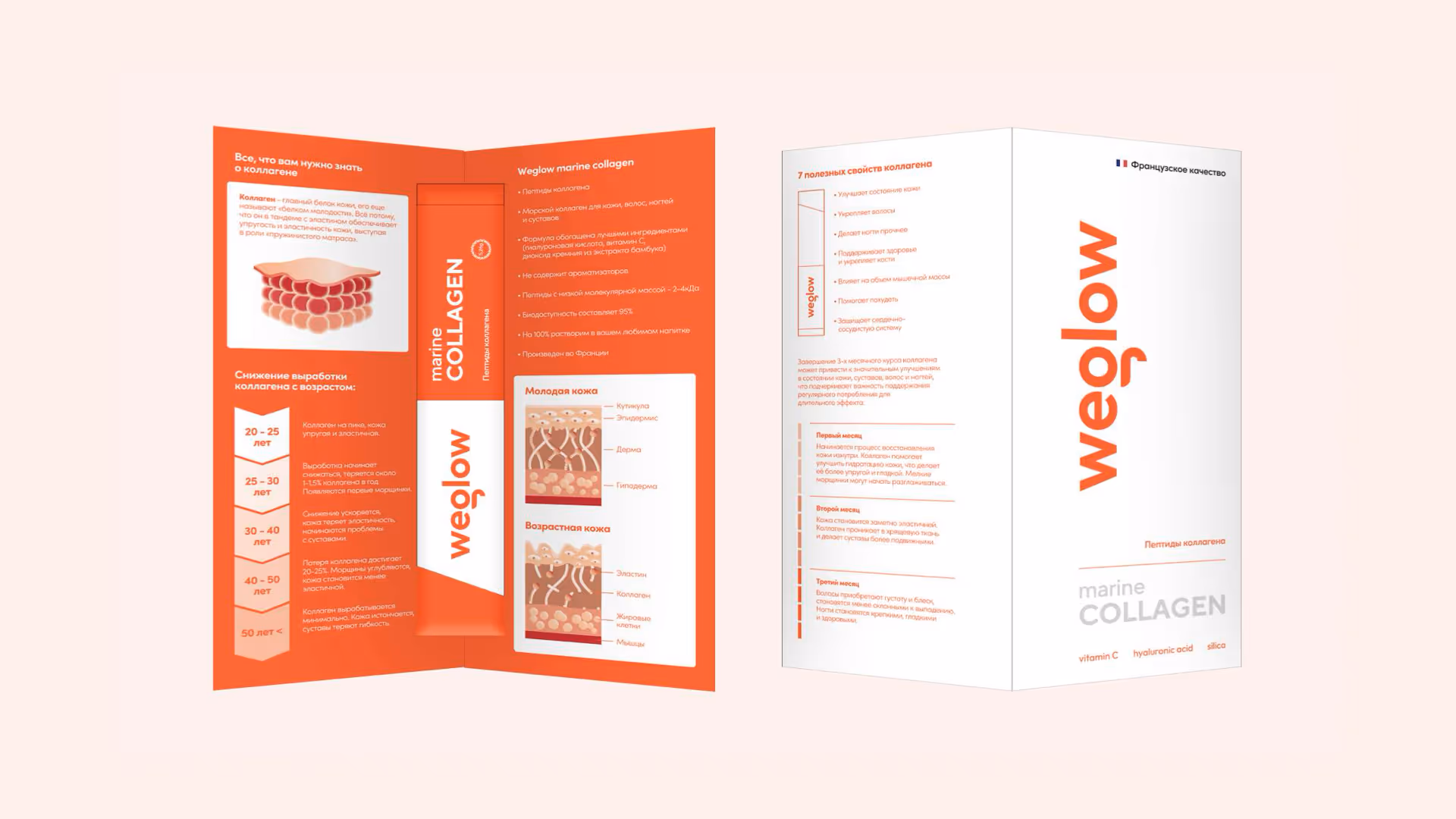 Разработать с нуля СТМ-продукт — коллаген WeGlow. Найти позиционирование, разработать название, фирменный стиль и упаковку. Сделать так, чтобы продукт вызывал доверие у клиентов и соответствовал стандартам международной бьюти-индустрии.