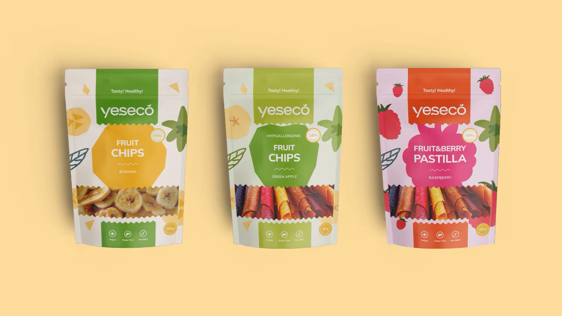 Yeseco — бренд натуральных снеков из фруктов и ягод, ориентированный на аудиторию, выбирающую здоровое питание. Продукты Yeseco не содержат добавленного сахара, искусственных ароматизаторов и усилителей вкуса. Ассортимент включает пастилу, фруктовые чипсы и гипоаллергенные снеки для чувствительной аудитории.
